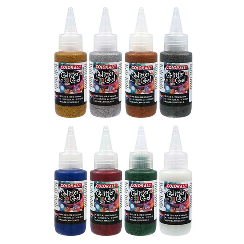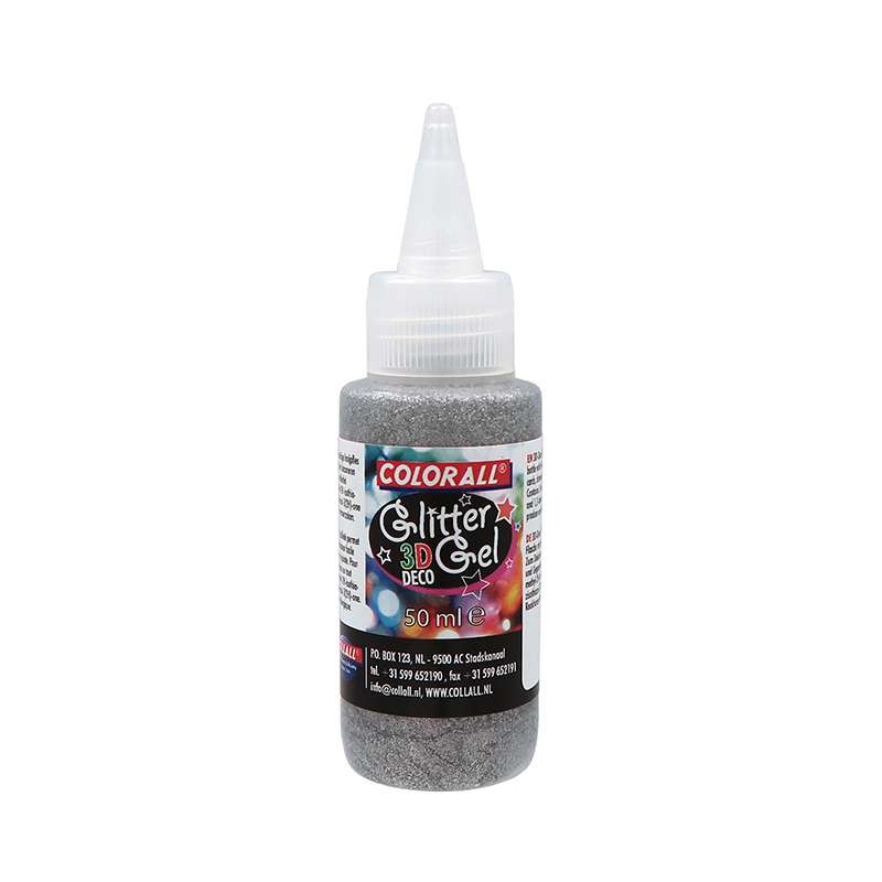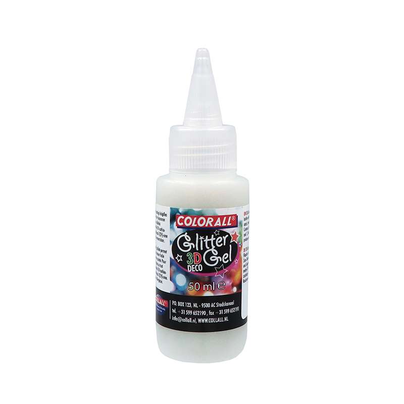 Colorall 3D-Deko Glittergelkleber is ein transparenter Klebstoff auf Wasserbasis. Schnell trocknend, mit reichlich Glitzer.
