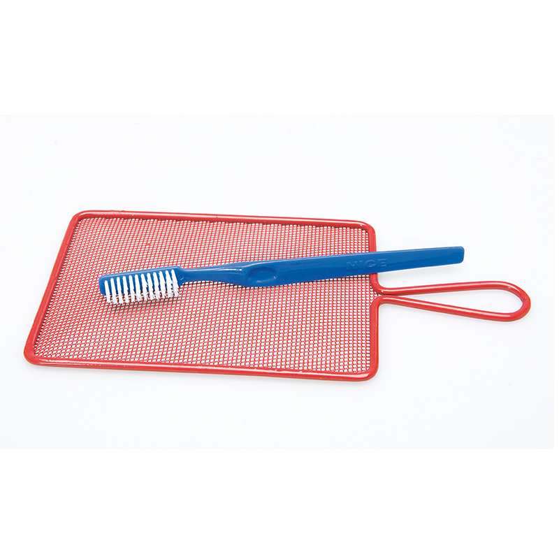 Sturdy red splatter screen, to be used with a toothbrush. Dip the toothbrush into the AquaTint and brush it back and forth over the splatter screen. The holes in the splatter screen ensure an even distribution of the AquaTint.