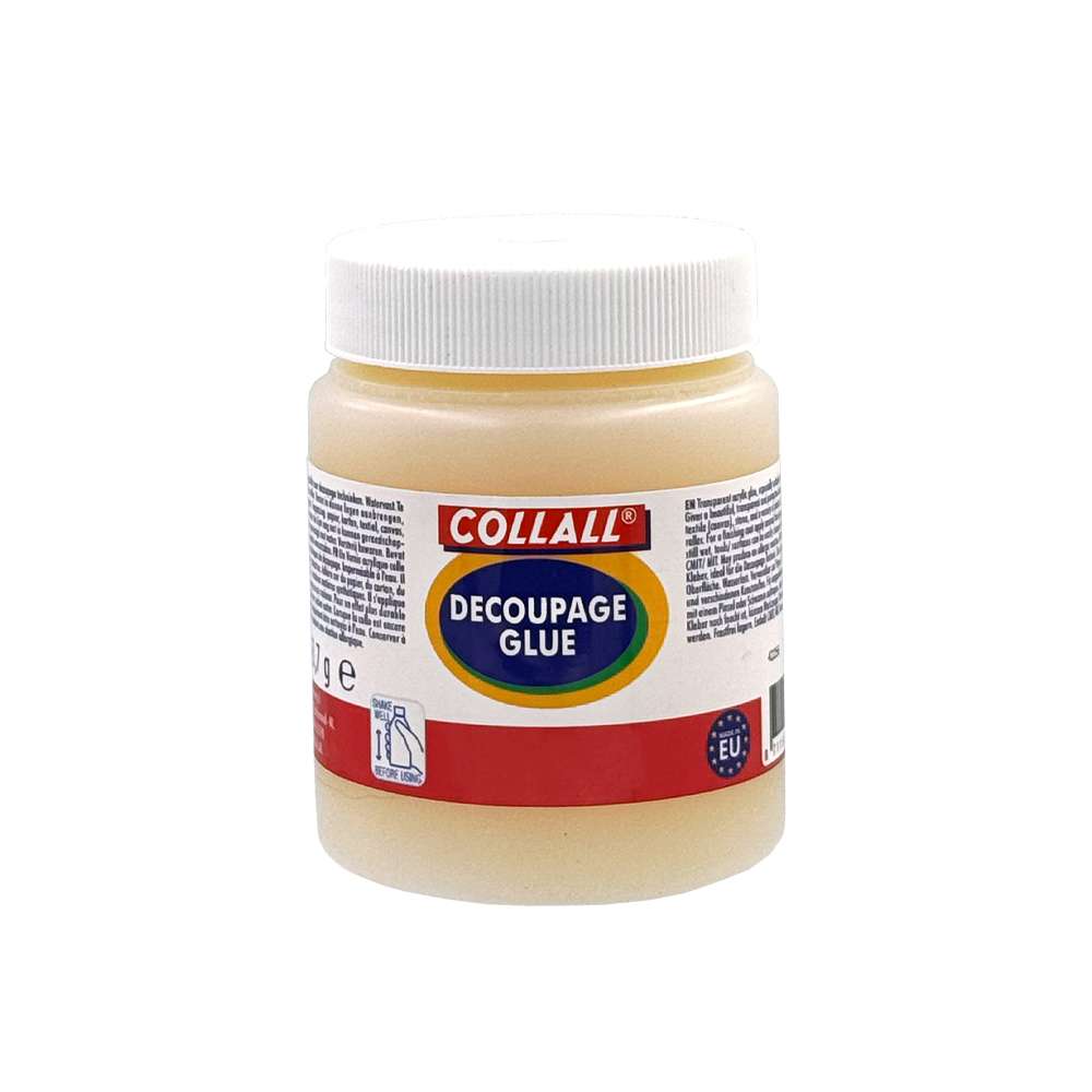 Collall Decoupage Glue is a thin transparent water-based glue. The glue is especially for applying decoupage material. Decoupage can be used to transform everyday objects into unique works of art.