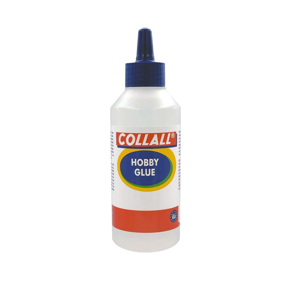 Collall Hobby Glue is a transparent water-based adhesive. It is suitable for gluing various materials, including paper, cardboard, wood, and fabric.