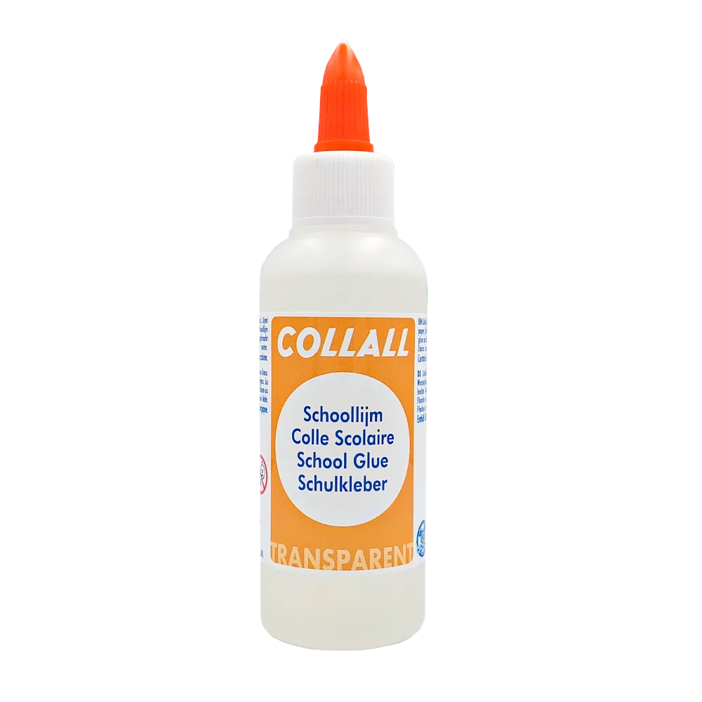 Collall School Glue comes in 100 ml bottles, which can be easily refilled using our larger 1-liter and 5-liter containers. With just a few pumps of our convenient glue pump, small bottles can be quickly replenished. School Glue is an affordable, water-based, and washable glue, making it ideal for bonding paper, cardboard, lightweight textiles, and many other materials used in school crafts.