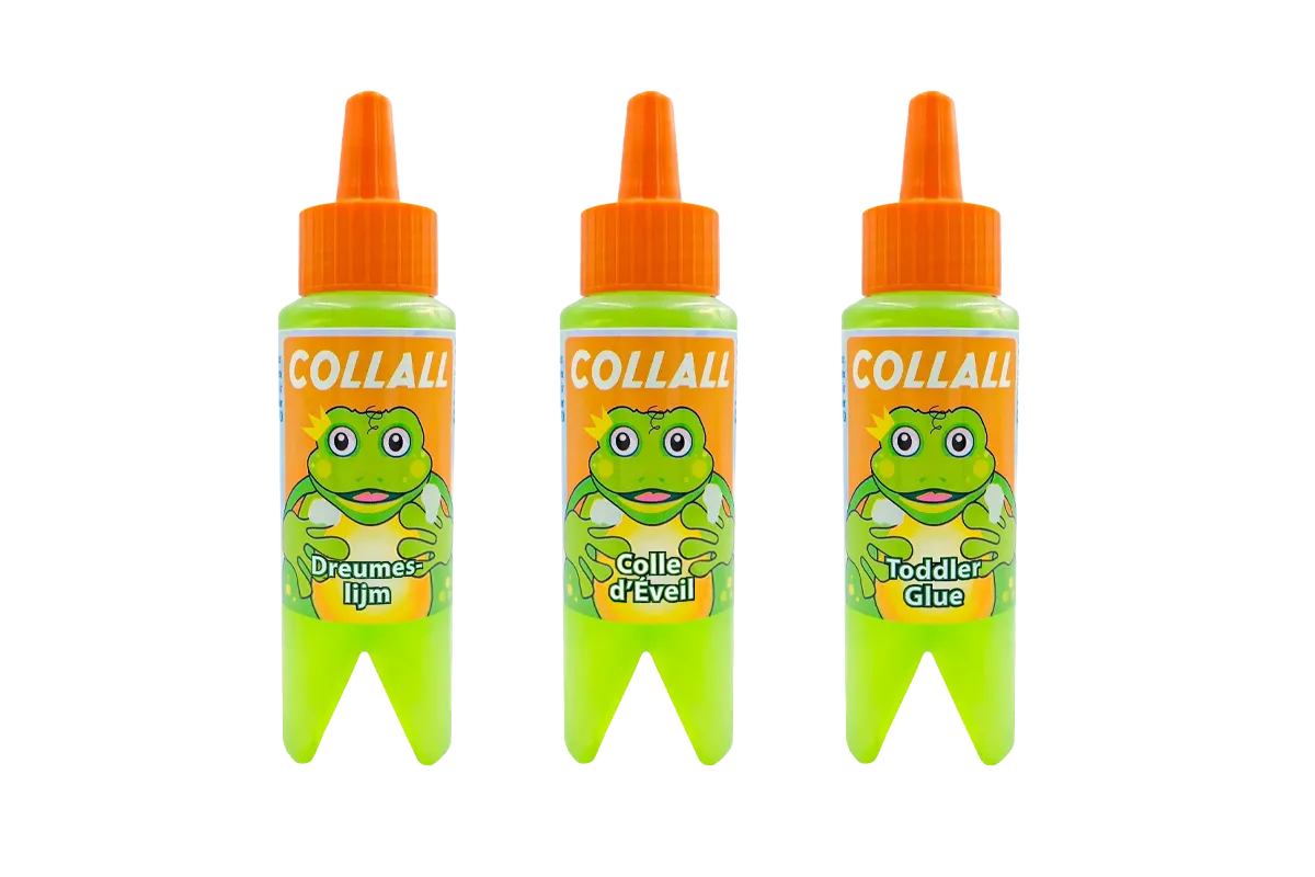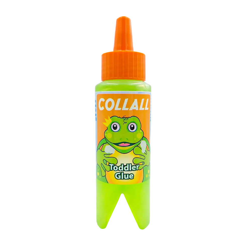 Application: Collall Toddler Glue in a funny bottle with two cute little feet and a friendly green frog on the front. This toddler glue is an innovative green-colored, water-based adhesive, specially developed for the littlest ones from 10 months and older.
